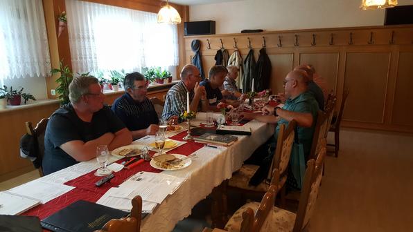 Die ersten Mitglieder im Versammlungsraum wie lange wird es heute gehen
